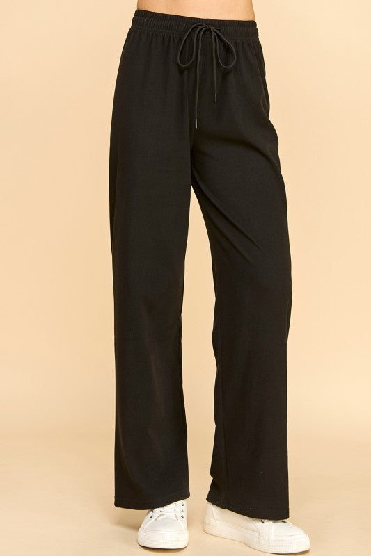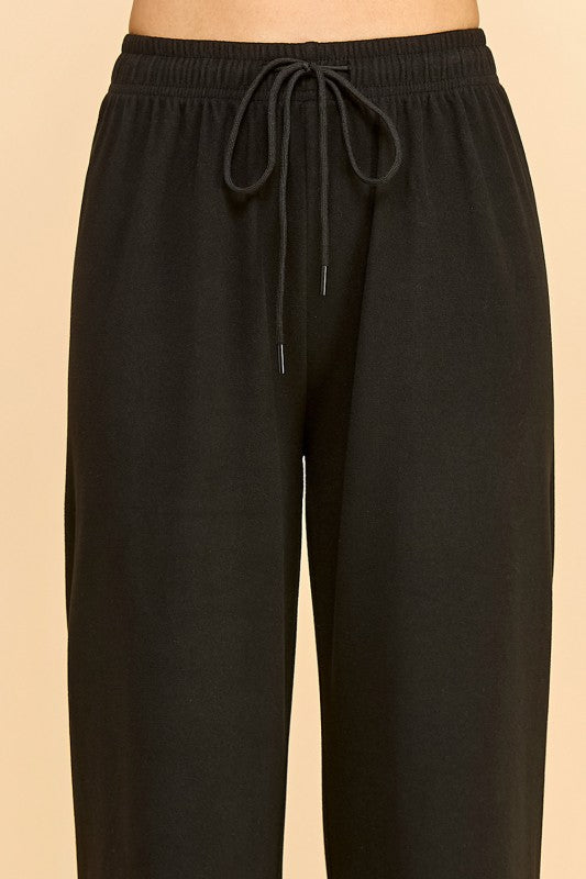 Essential wide-leg lounge pants with an adjustable drawstring waist for all-day comfort. Fleece lined Model is wearing a size Small 95%...