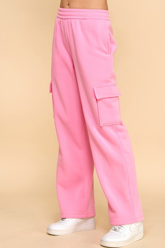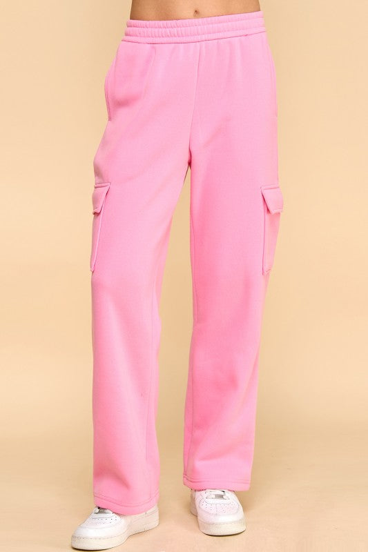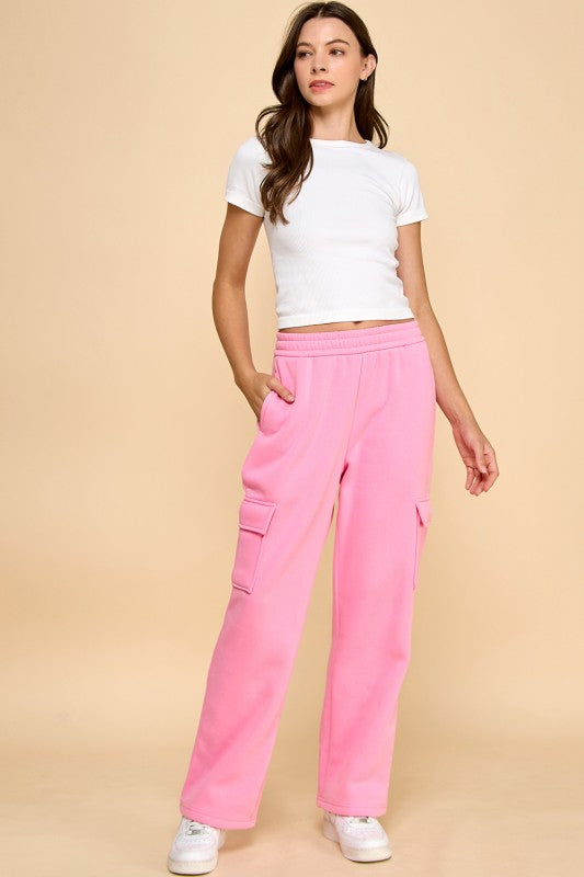 Soft and cozy french terry fleece cargo pants with a relaxed fit and everyday comfort. FLEECE LINED SIDE POCKETS Model is...